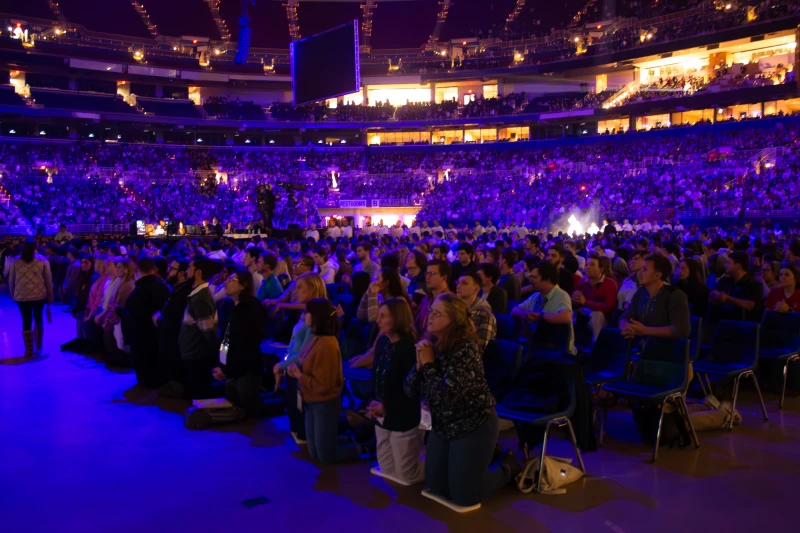 Wednesday evening’s Eucharistic adoration session drew an estimated 24,000 people, including local St. Louisans, to the former NFL stadium attached to the convention center. Before the worship session began, participants heard keynote addresses from Sri and Schmitz.
