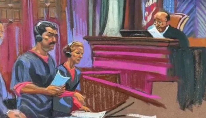 Artist’s sketch of Nicolás Maduro and Cilia Flores at the New York courthouse where they appeared Jan. 5, 2025. Photos and videos are prohibited, hence this illustration, but journalists are allowed to be present. | Credit: CNN
